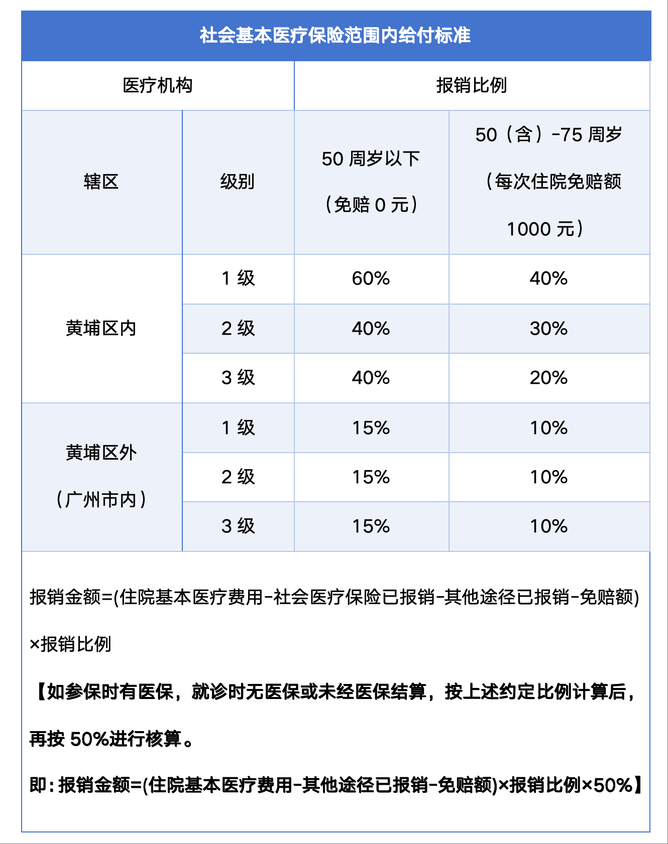 50周岁以下不设起付线,按约定比例报销;