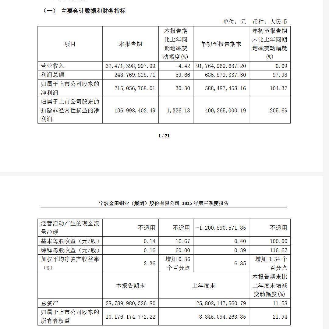 上海证券交易所数据显示,金田股份12月2日市价总值176.1482亿元,控股股东金田投资持有金田股份4.23亿股股份,占上市公司股份总数的24.49%,市值约43亿元。根据上述分配方案,楼城、楼静静获赠的股权间接持有的上市公司股份市值分别约为30亿元、3.53亿元,合计约33.5亿元。